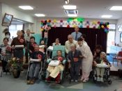 皆様の長寿のお祝いと、日頃のご愛顧に感謝して敬老会を開催しています。特技を披露したりチームを組んで出し物をご覧いただいたりと、いつもとは違う職員の姿に、沢山の笑顔と拍手をいただくことが出来ました。ボランティアの方もお祝いに駆けつけて下さり、ステージが一層華やいでいます。